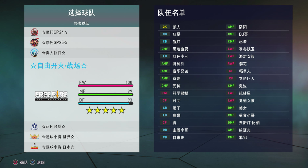 8,经典俱乐部比较多,且含有足球小将日本和世界队伍,真人快打,复仇者联盟,假面骑士,决战巅峰,吃鸡等