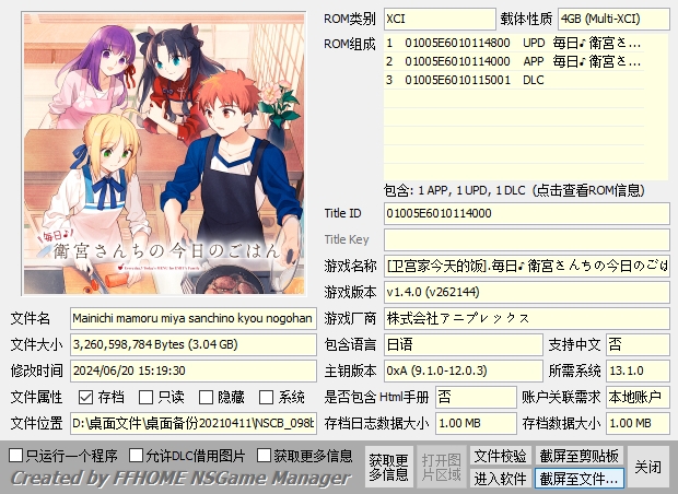 11.13更新命运之夜重制版1.4.0 b388补丁