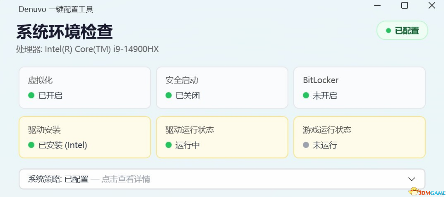 以上都完成后:打开Denuvo.exe 检查第一排设置是否都已经完成