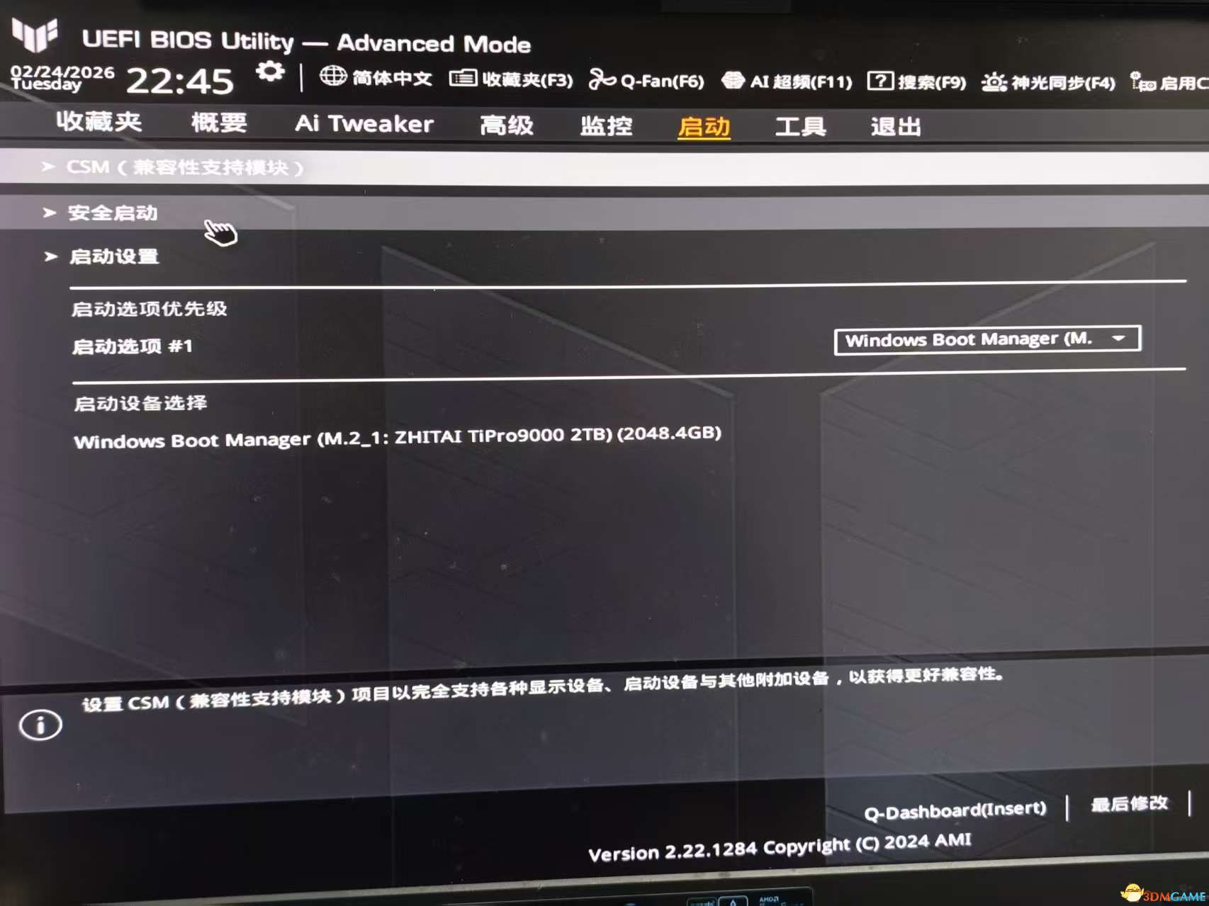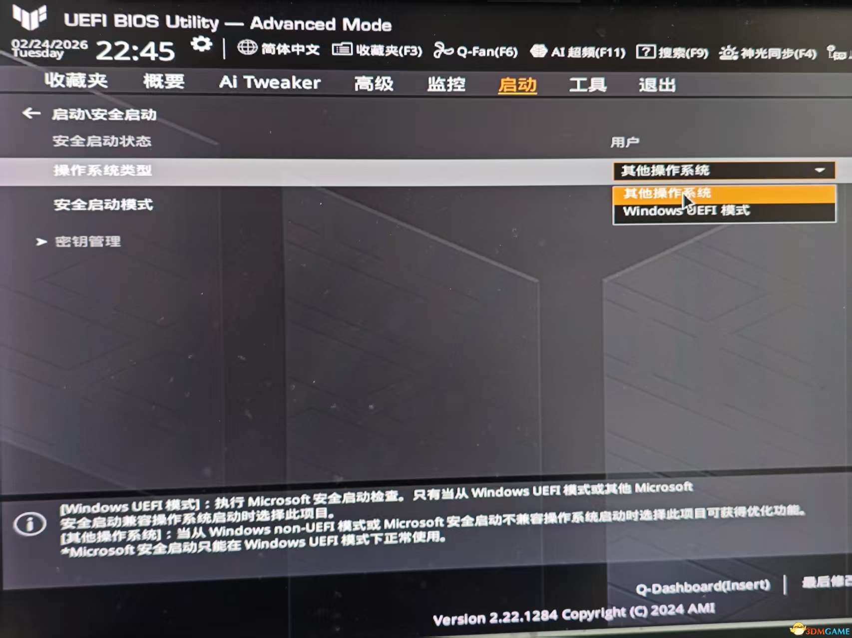 重启进入BIOS,重新开启安全启动(Secure Boot)![]()